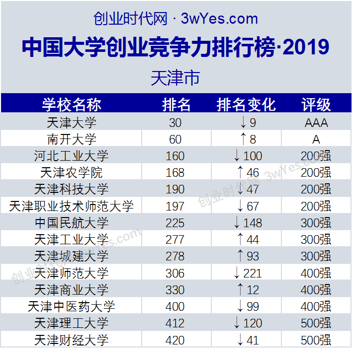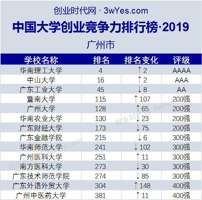 “中国大学创业竞争力排行榜500强·2019”榜单,将大学创业竞争力解构为创业教育、创业活动、创业潜力、创业人才四大维度,具体选取了: