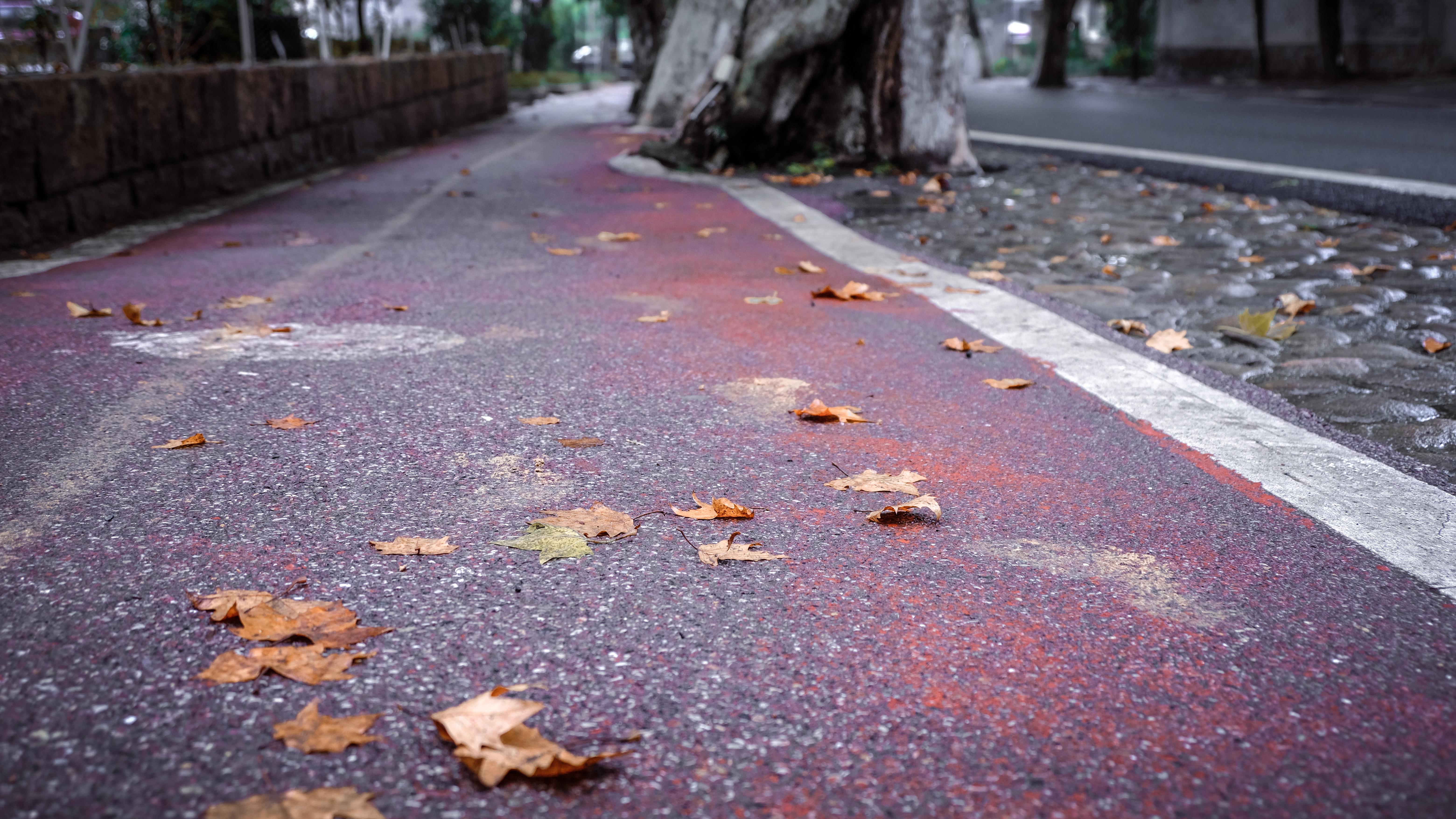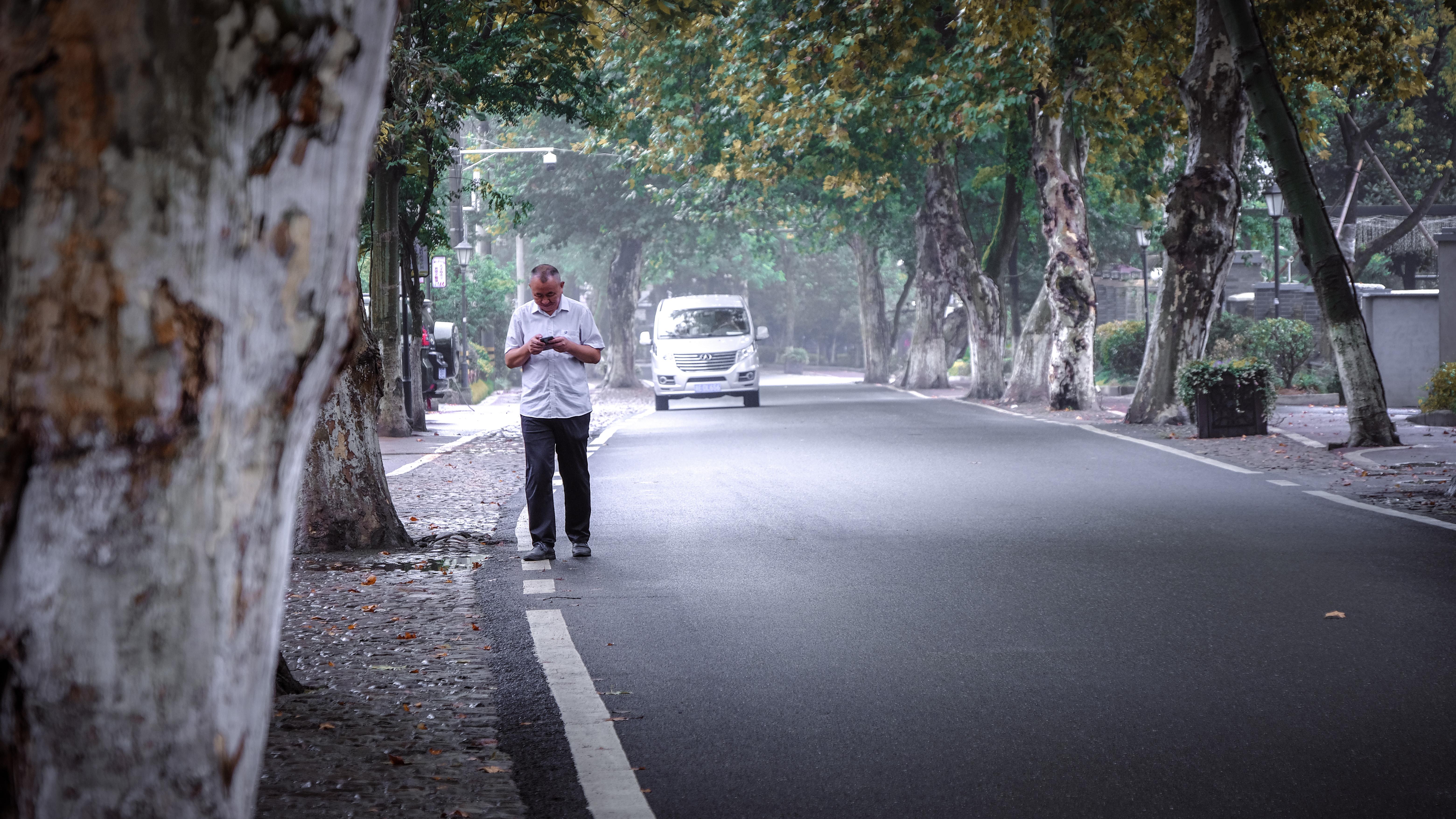 秋天将至,梧桐树叶开始变黄,一片片坠落在沥青路上,这是历史与现代的完美结合。