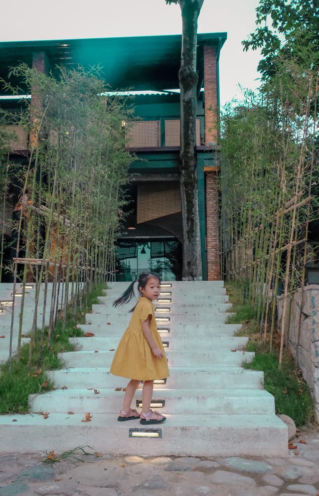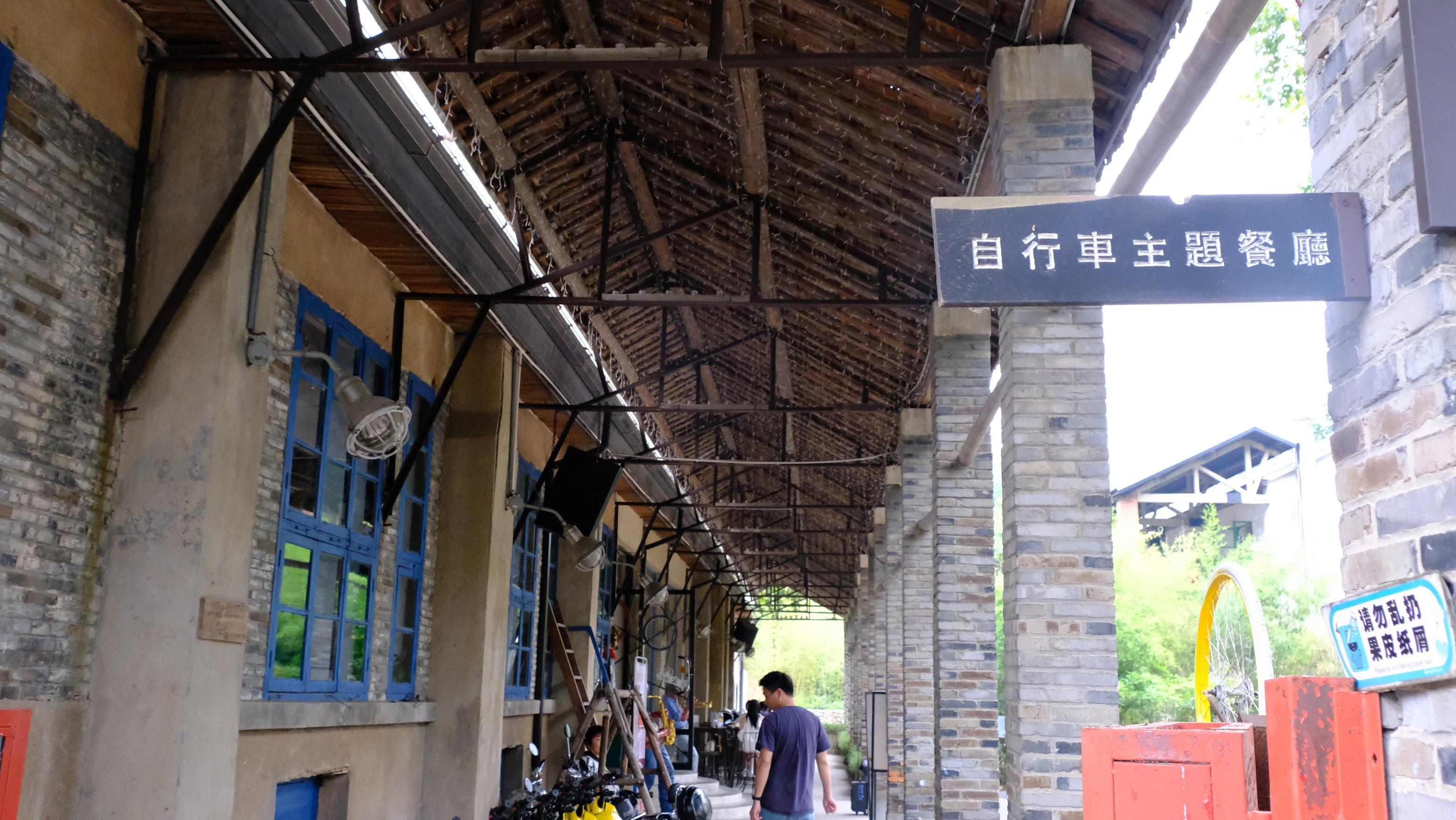 另一栋与其相关的建筑物就是当年的蚕种场,荒废了许多年,感谢近年来民宿小镇的打造,如今由一帮年轻的设计师接管,变成了庾村1932文创园,集精品咖啡厅、复古自行车主题餐厅、青年旅社、书屋等一体。他们用石头砌成围墙,用山间的竹子架起凉棚,用河滩的鹅卵石铺成台阶,旧建筑的格局与外貌完整地被保留下来,加以美化。