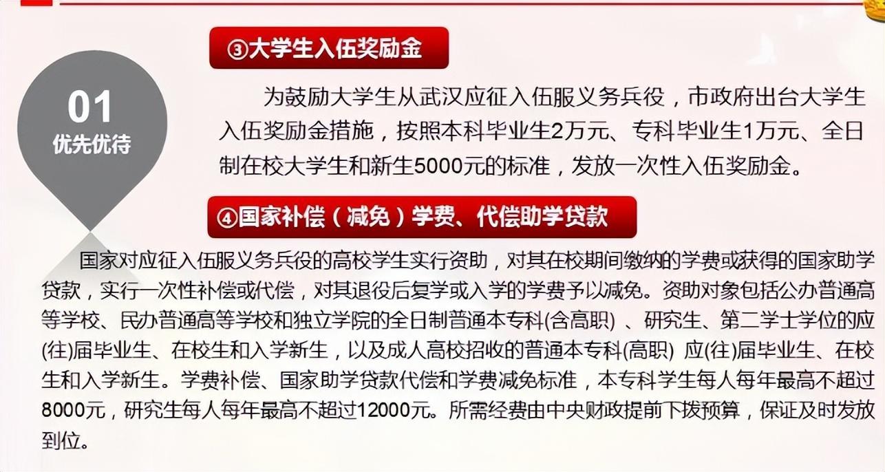 这对于家境一般的学生而言就减少了不小的负担。其次,对于在部队荣获二等功及以上的大学生,在退伍后可以免试攻读研究生。这对于考研的学生而言可是大大的福利了。要知道考研上岸不比考公务员容易。