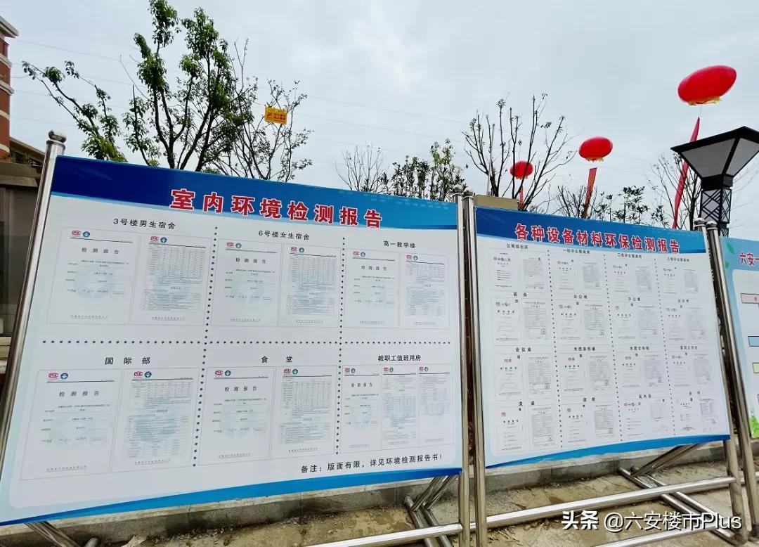 由于是新建学校,为了让家长和孩子们放心,创造一个健康、安全的学习生活环境,学校已经将投入使用的学生宿舍、食堂、教学楼等全部进行了环境检测,并将检测报告公示在学校门口。