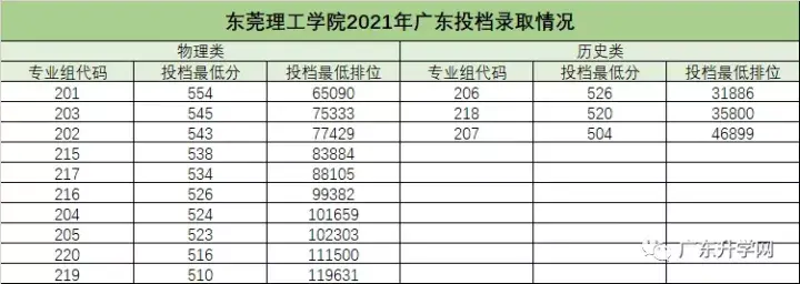 206专业组面向广东省非东莞市生源,出档最低分526,最低排位31886,较2020年广东省非东莞市生源文科最低录取排位上升1509位。