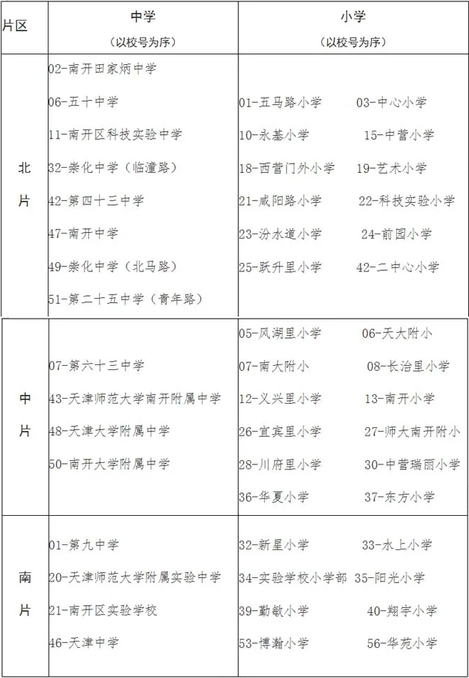 中学:天津一中、第五十五中学、第九十中学、汉阳道中学