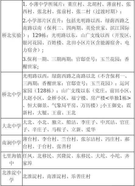 以军粮城街所属各村(含军粮城新市镇、和顺家园)为招生片,对应的小学有刘台小学、军粮城小学、苗街小学、民生小学户籍在招生范围的小学毕业生为招生对象。