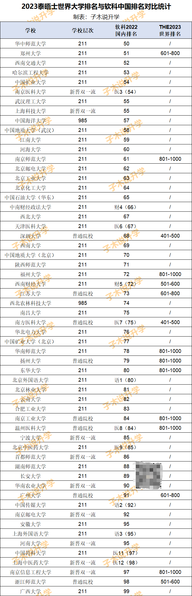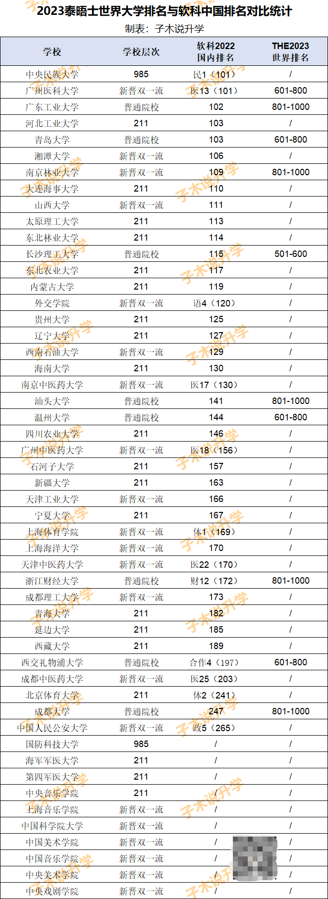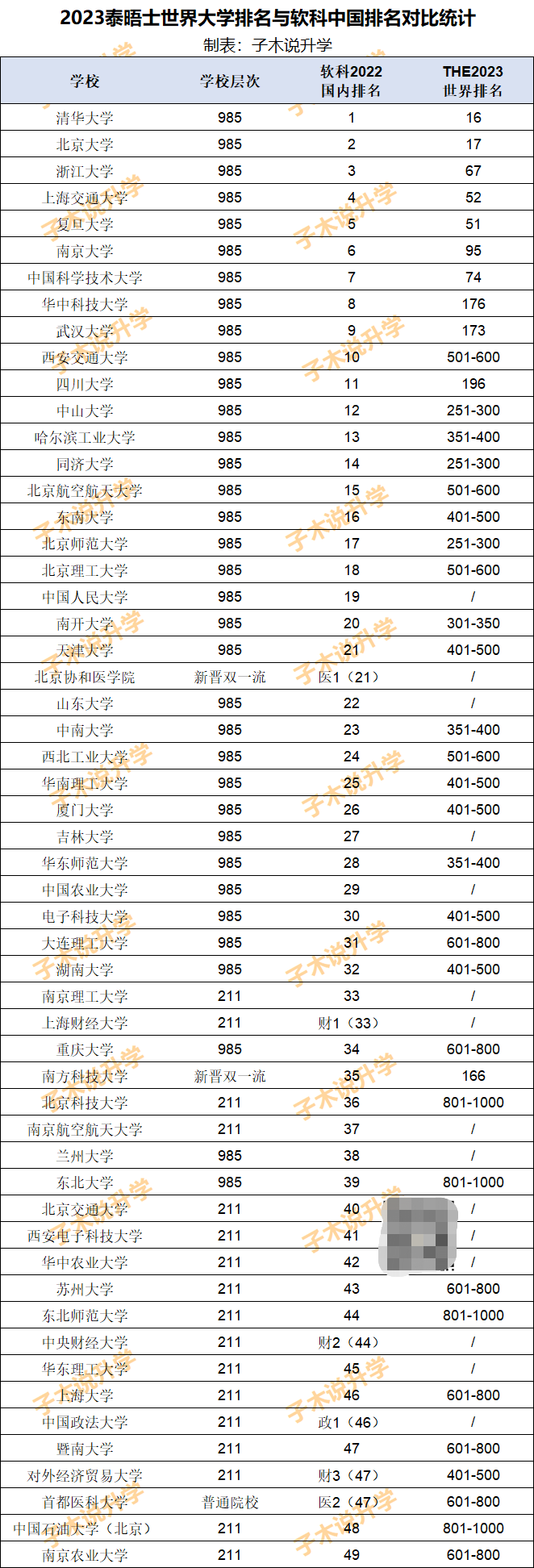 目前,国内关于院校排行榜比较具有权威性的榜单是软科的最好大学排行榜。为此,子木说升学专门制作了泰晤士和软科的排行对比,榜单中包含所有的985/211/双一流大学,供各位升学参考。