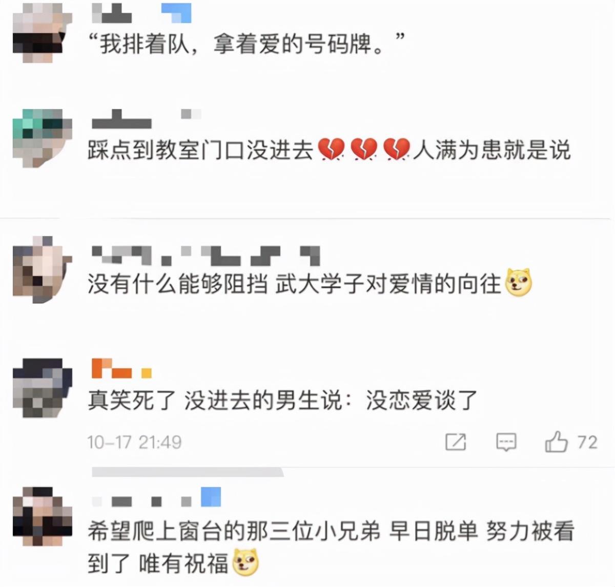 武汉大学新开了一门叫“爱情心理学”的选修课,开课当晚就爆出人挤人的盛况,选上课的同学表示准点到教室,却被堵在门外。