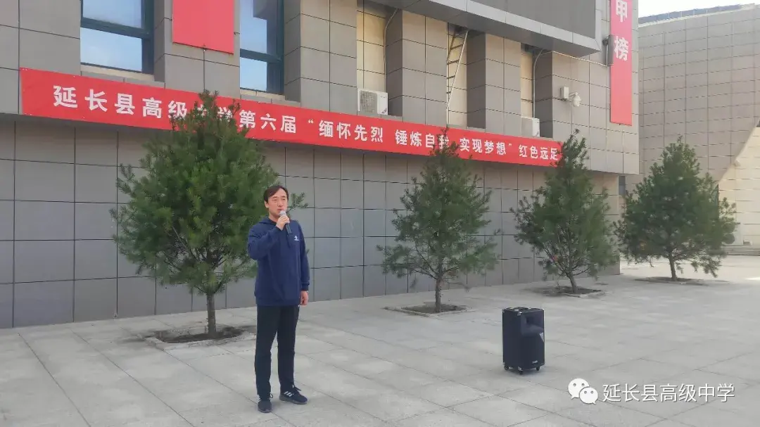 为了增强学生体质,磨砺学生意志,传承红色基因,2020年10月24日,延长县高级中学开展以“缅怀先烈、锤炼自我、实现梦想”为主题的第六届红色远足活动。校委会部分成员、学校高一、初一年级全体师生约700人参加了此次活动。副校长赵俊科主持开营仪式。他强调,希望同学们从思想上认识到、从行动上实践到,这次红色之旅是弘扬延安精神、传承红色基因之旅,爱国教育之旅,还是文明之旅、绿色之旅、环保之旅、励志之旅。希望同学们,汲取烈士精神的丰富营养,淬炼灵魂,做优秀的自己,做优秀的长中人。