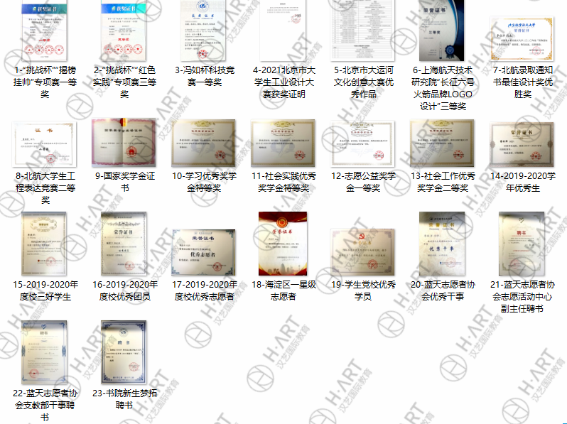 汉艺20届学员L同学 跨校保研清美 奖状合集
