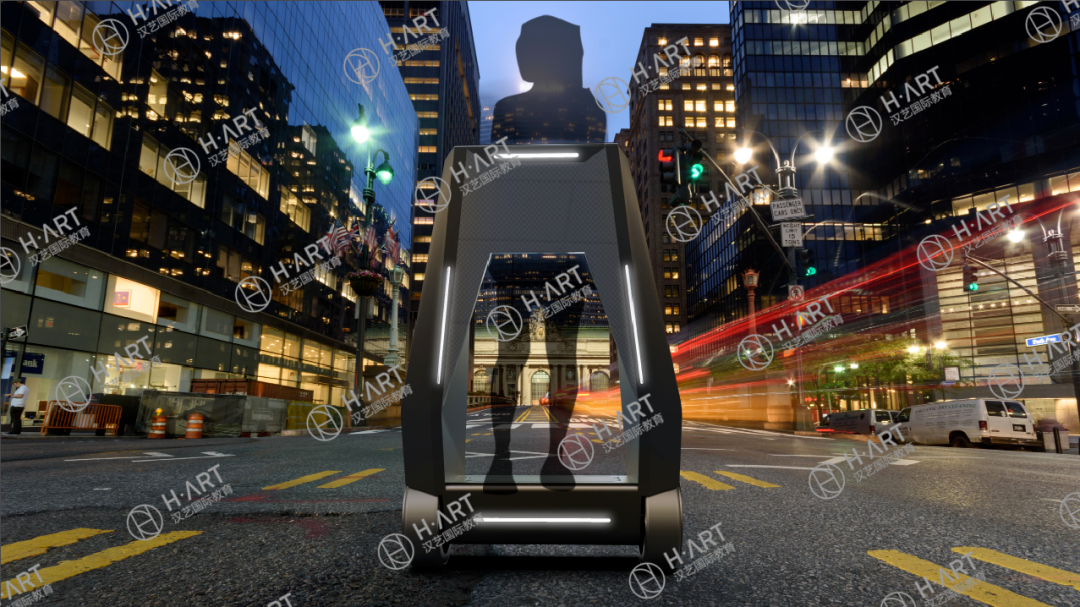 “智能出行”同样与人工智能密切相关,是近几年的大热话题,国外很多院校都开展了相应的研究。比如汉艺往届学员W同学,20年从萨凡纳工业设计专业毕业时做的毕设,就是一款智能共享平衡车。
