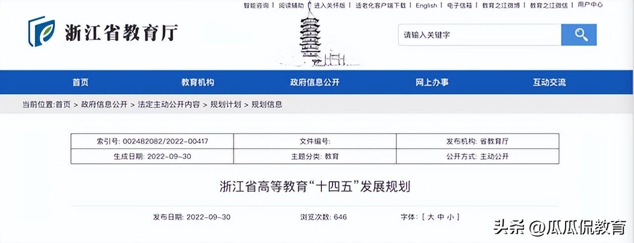 最近,有网友曝光,浙江省教育厅发布《浙江省高等教育“十四五”发展规划》,其中明确提到浙江省要推进各类高校特色发展,除了要支持浙江大学、西湖大学、中国美术学院、宁波大学等高校外,也要支持浙江工业大学、浙江师范大学等高校创建国内一流大学,引领辐射带动浙江高等教育水平整体提升。