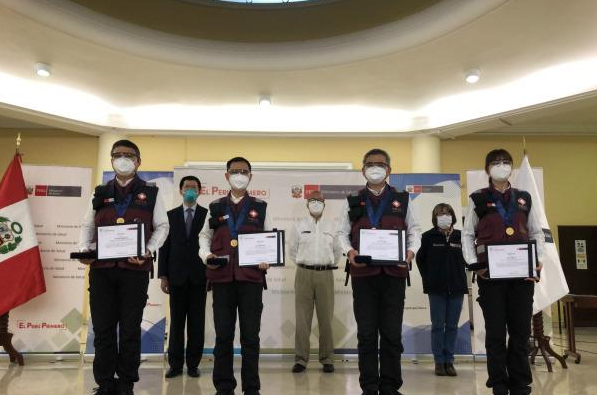 2020年6月8日,新华网报道了由南方医科大学南方医院四位专家组成的中国赴秘鲁抗疫医疗专家组。中国援助秘鲁专家组5月23日晚抵达秘鲁首都利马,在两周时间里,专家组共走访12家医疗机构以及秘鲁国家卫生研究院、泛美卫生组织秘鲁代表处等机构,召开22场交流会,举办19次培训,与30多家相关机构代表进行座谈。6日晚,为了表达对中方专家组的感谢,秘鲁卫生部长萨莫拉代表秘鲁政府向专家组4名成员颁发了荣誉证书和奖章。