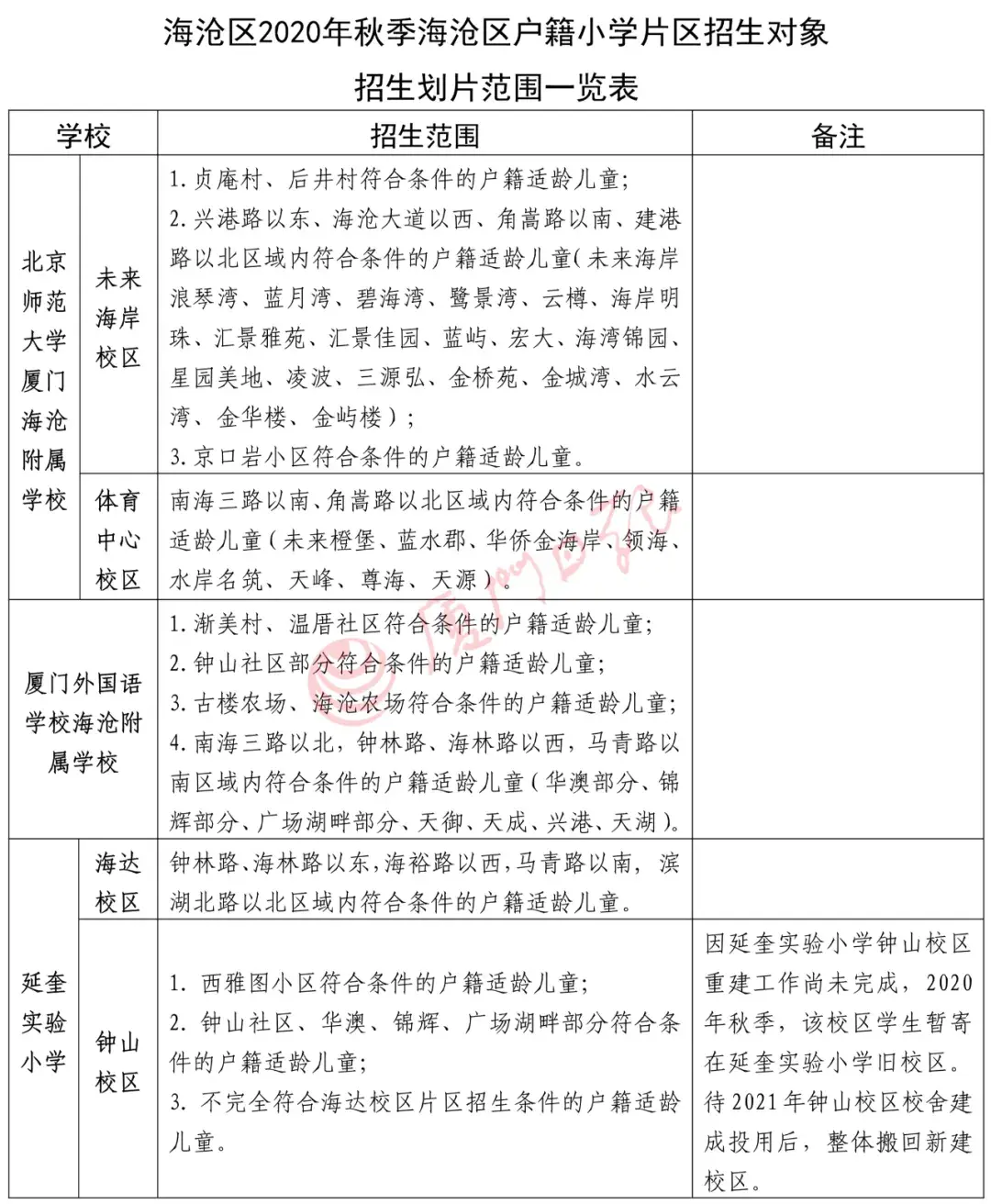 01、湖里区、海沧区发布秋季小学招生划片方案!
