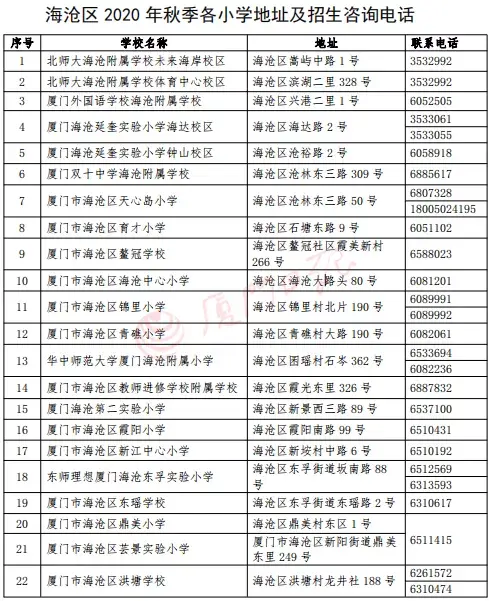 根据市教育局要求,今年公布出入学矛盾特别突出的“热点学校”名单,海沧是:海沧延奎实验小学、北京师范大学厦门海沧附属学校、厦门外国语学校海沧附属学校、厦门双十中学海沧附属学校、海沧区天心岛小学;2021 年起,热点学校增加海沧区教师进修学校附属学校、海沧区第二实验小学。