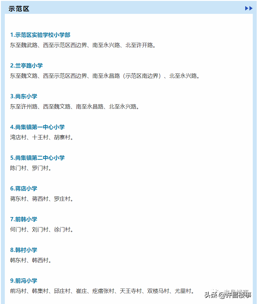 此次《实施方案》公布的示范区初中学校主要有两所,示范区实验学校中学部和河南省实验学校许昌中学,而省实验许昌中学也是从去年转为公办后才划分的学区。