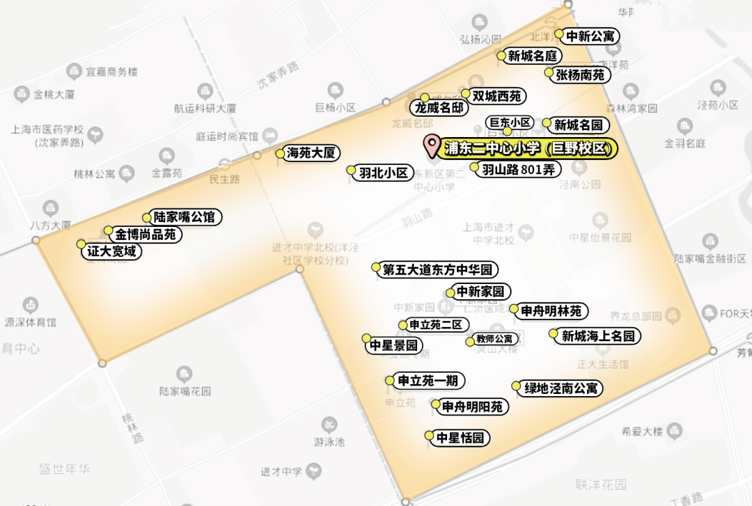 第五大道东方中华园位于羽山路600弄,属于浦东洋泾板块,斜对面就是浦东二中心巨野校区。