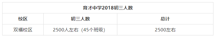 育才初三学生主要在双福校区,2016年初三人数2000人左右,2017年初三人数2200人左右,2018年初三2500人左右。