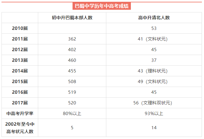 2. 巴蜀初中生源好,实验班非常牛,但是学生竞争压力也大。原因:初三毕业人数多,基数比其他学校大,导致竞争压力大。另外,业主生占了很大部分。