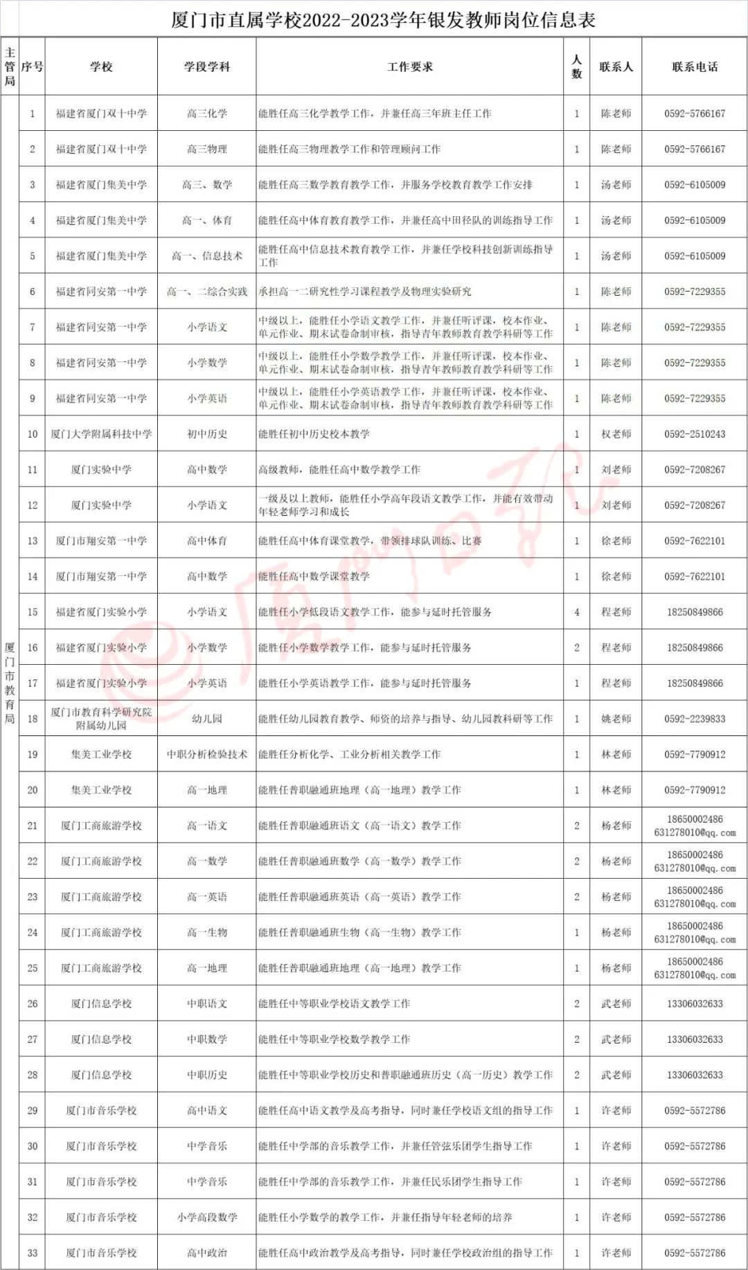厦门市教育局招募2022-2023学年“银发教师”公告 - 家有读书郎