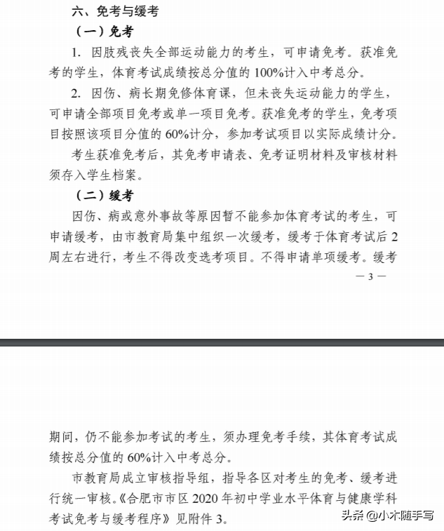 合肥中考体育的免考和缓考