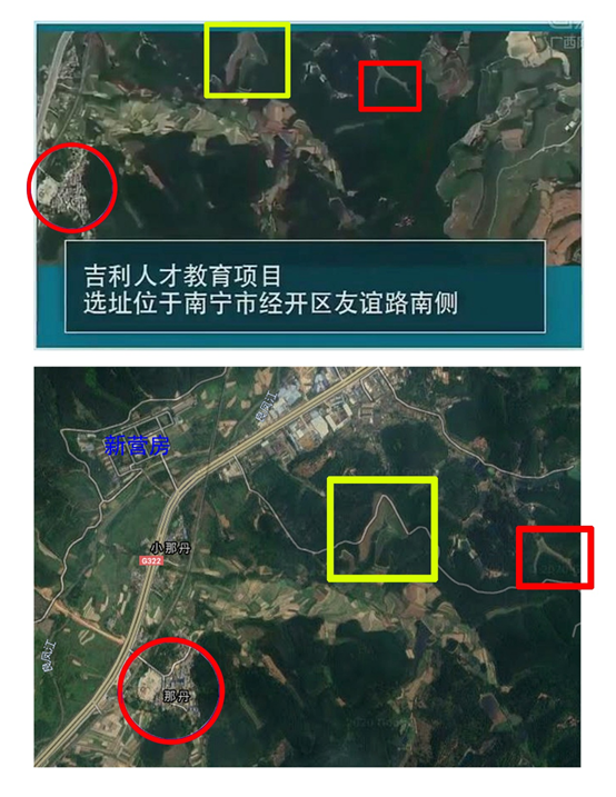 2020年6月20日下午,由广西广播电视台主办的“风起·向南”南宁城市发展论坛在南宁举行。论坛上播放了由自治区土地储备中心制作的一段视频,视频中展示了吉利(南宁)教育项目的卫星地图。