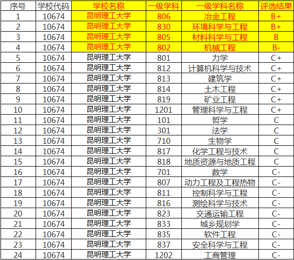 上次的学科评估中,昆明理工大学也只有4个B类学科,但是学校的实力对于中等学生来讲,是一个不错的选择。