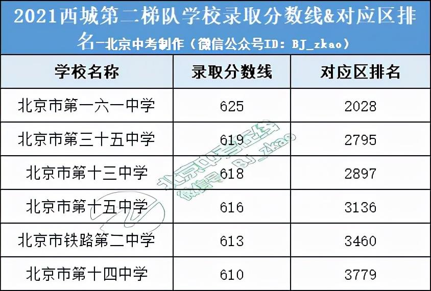 根据2021年西城区中招录取分数线,我们将西城区高中分为三个梯队,如下: