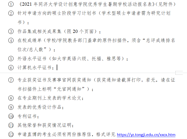 第一步,进入保研夏令营。还是以同济大学设计创意学院的保研夏令营为例,筛选进入夏令营学员的方法是,根据学生的本科学习情况、外语水平、硕士阶段学习计划书(研究计划书)、作品集以及本科在校期间表现等各方面素质进行综合评分,择优选拔。