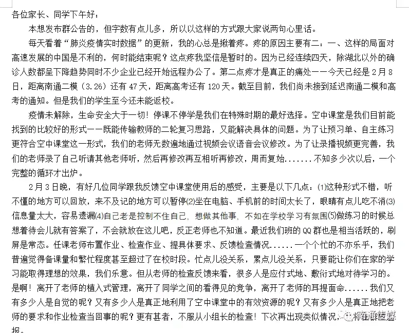 学生们的成绩为什么这么好? 时间回到今年的2月22日,面对疫情和高考日益临近的双重考验,白蒲中学发出一条官微《行者常至,为者常成。蒲中高三团队:厚积分秒之功,始得一鸣惊人》,看看他们的高三年级第一阶段假期是怎么奋斗的——