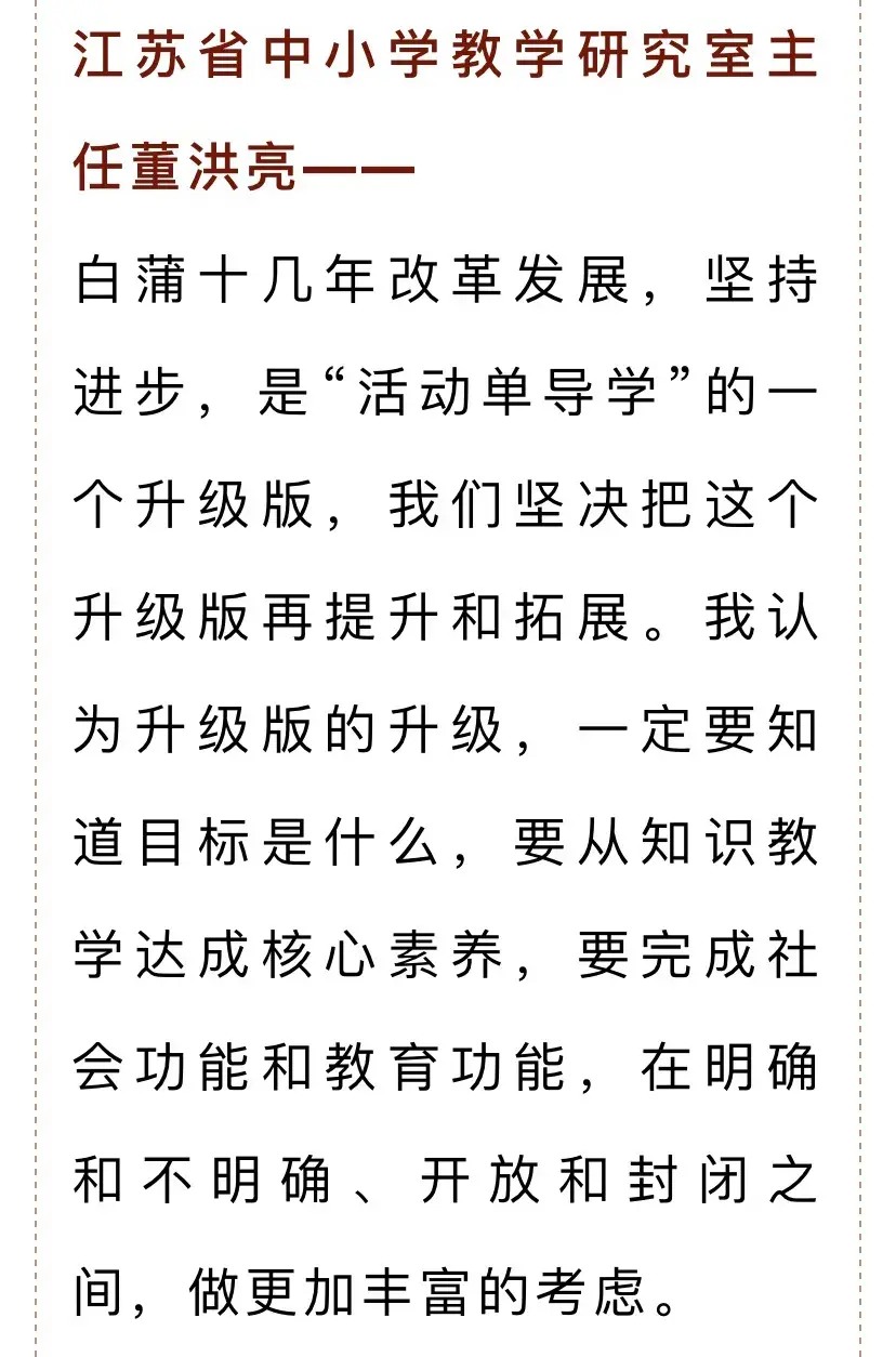 白蒲中学在时代发展中不断进步,代表的是乡村振兴,是对中国教育现代化的重要贡献。白蒲教育之路是江苏教育自信、自强、自觉之路,相信面对新课程新高考改革,学校一定能经受住下一轮更艰巨的挑战。