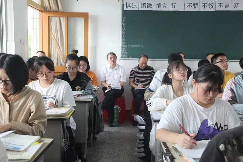 视导组在白蒲中学随堂听课,覆盖高三年级九门学科所有老师的课堂,查看学生学习、学校管理等档案资料,深入了解江苏省白蒲高级中学教育教学改革的重点举措及成效,并与教育行政部门及学校有关负责同志进行访谈。