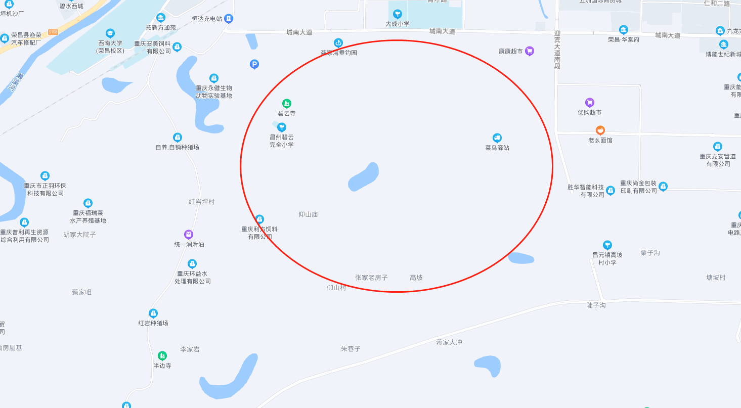 从规划图上来看,荣昌校区规划所在地为重庆市荣昌区海螺社区和红岩坪村,包含海螺社区一组部分、二组部分、三组部分。
