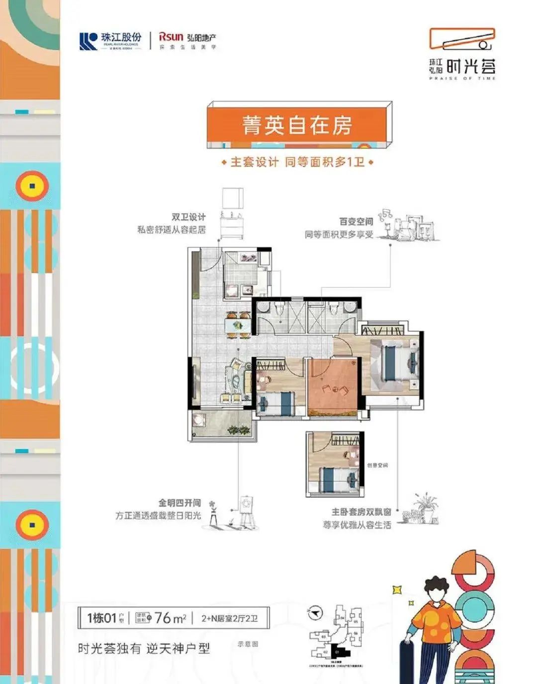 综合来说,珠江弘阳·时光荟实用率较高,并且这样的户型实属罕见,在同板块楼盘中避免产品同质化也是一大优点。