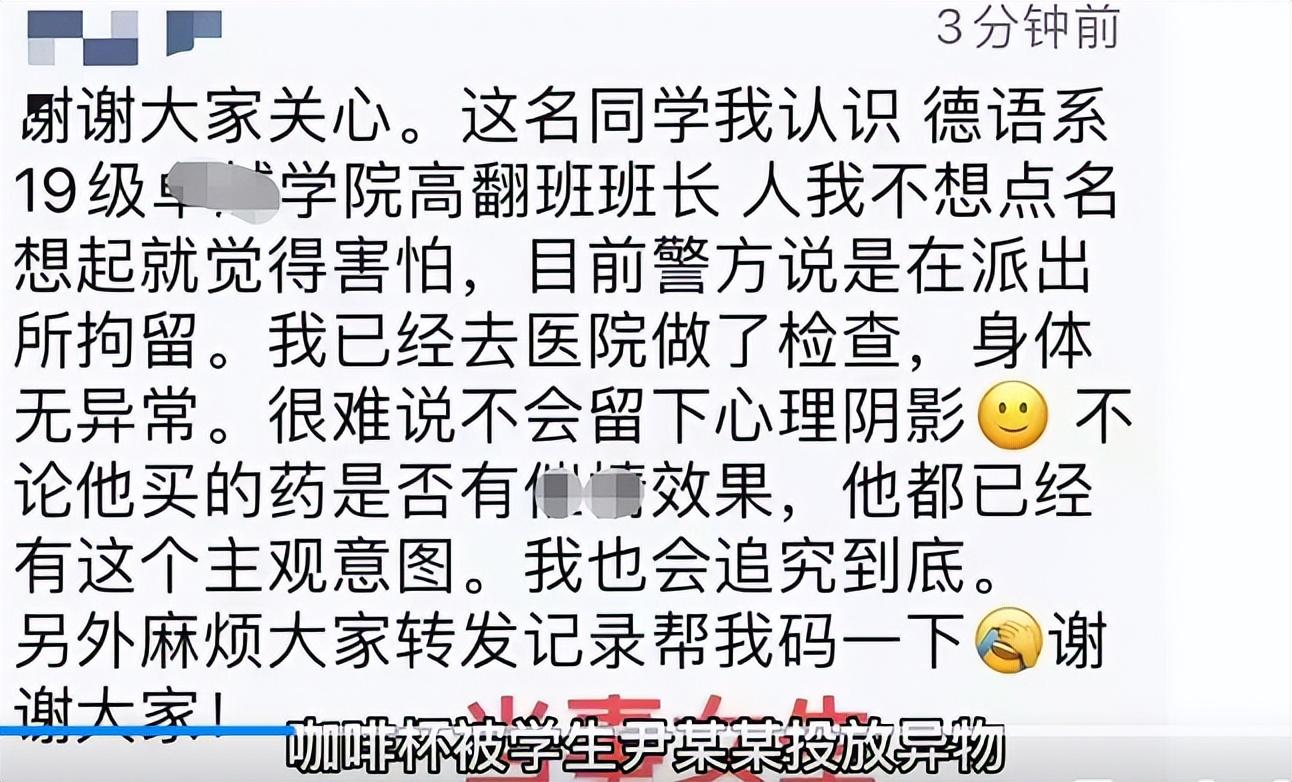 什么仇什么怨?上外男生向女生咖啡杯中投“异物”,后续来了