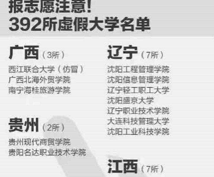 但也正是因为我国高校数量的不断增加,导致一些假冒大学趁虚而入,也就是野鸡大学,而每年高考结束之后都会有多名考生上当受骗,根据数据显示,我国共有野鸡大学数量392所,2021届考生需注意。