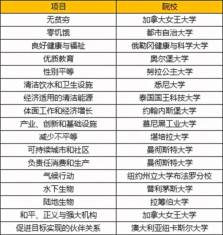 在SDG17个可持续发展目标中,单项排名最高的大学如下:
