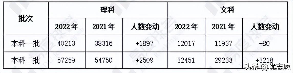 下表为2021-2022年云南省高考普通类本科批线上的考生人数。云南理科本科线上人数较2021年增加了4.7%,文科线上人数较2021年增加了8%,文一批上线人数较上年未发生较大变化。2022年云南省普通批计划人数较上年有所增加,其中理科计划增幅超过线上人数增幅。