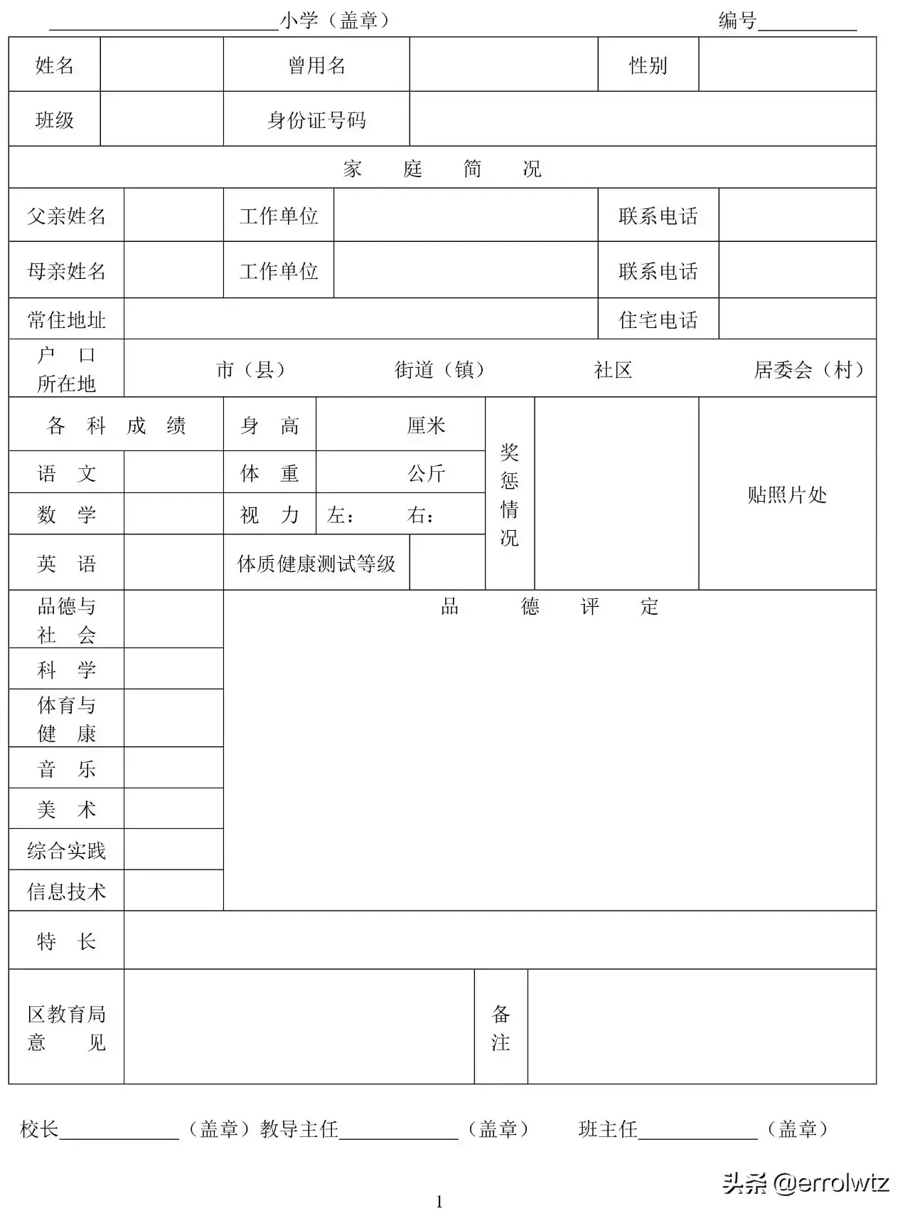 2020年海曙区小学毕业生登记表