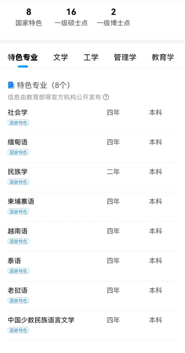 云南民族大学的优势学科是社会学、缅甸语、民族学等优势学科,对语言类、文科类感兴趣的同学报考是个不错的选择。