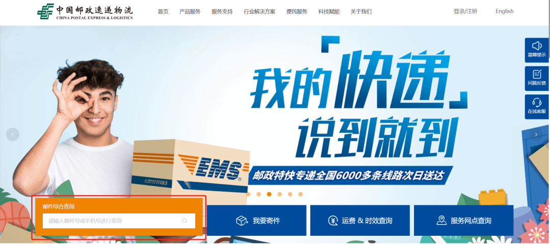 打开EMS官网(http://www.ems.com.cn/),输入14位考生号(广东考生为10位)进行查询。