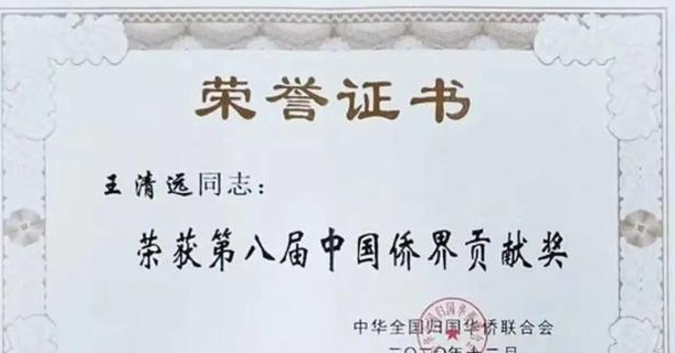 中国侨界贡献奖主要是为了表彰那些在回国之后在创新创业领域有着突出贡献的优秀人才,王清远校长这次能够获得中国侨界贡献奖,又再一次为成都大学争光了。