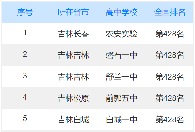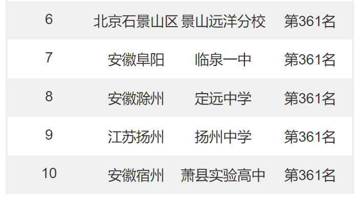 与如东中学全国排名相同的75所高中如下表所示(本文仅展示前10所):