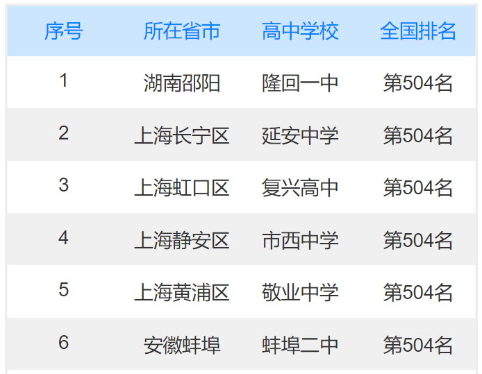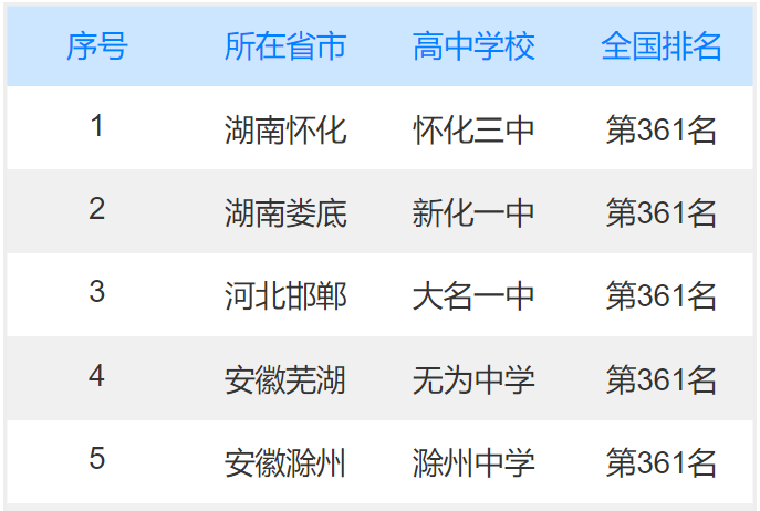 备注:上表中全国排名相同,则说明上述列表中的高中学校在最近几年的高考成绩比较接近。