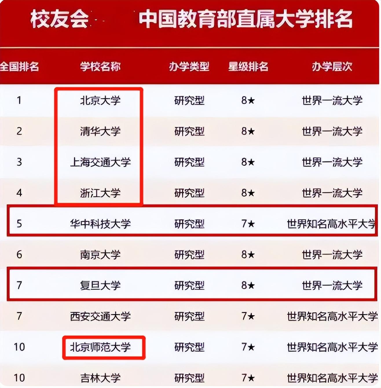 2022国内知名大学排名出炉,“清北交浙”排名前四,复旦排名意外