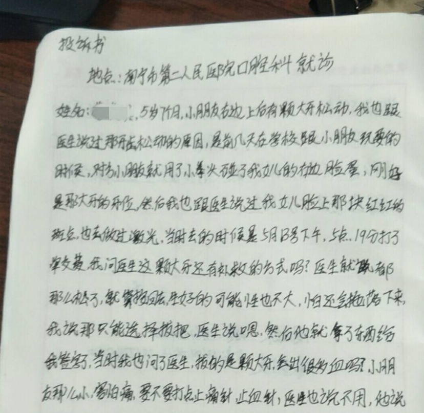 “我签完字还问过医生,这个拔牙手术有没有风险,要不要给孩子打点麻醉针之类的。”周女士一想起当时的情景就后悔不已。