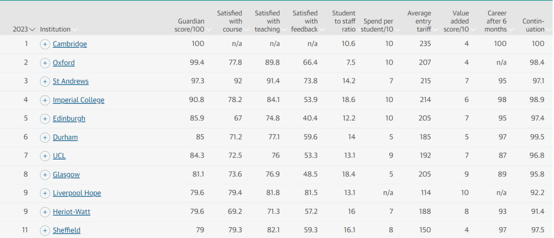 其实卫报排名本来就是设计给本科生看的。排名中有三个指标基于NSS结果,而NSS仅面向本科生进行。录取成绩指标则是基于A-level成绩进行的。