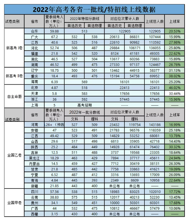 上篇文章我们说到各省试卷难不难问题,这篇文章我们看一下除上海之外的2022年高考各省一批线上线数据情况,分析一下各省一批上线率,看一下哪个省份上线率高,哪个省份上线率低。
