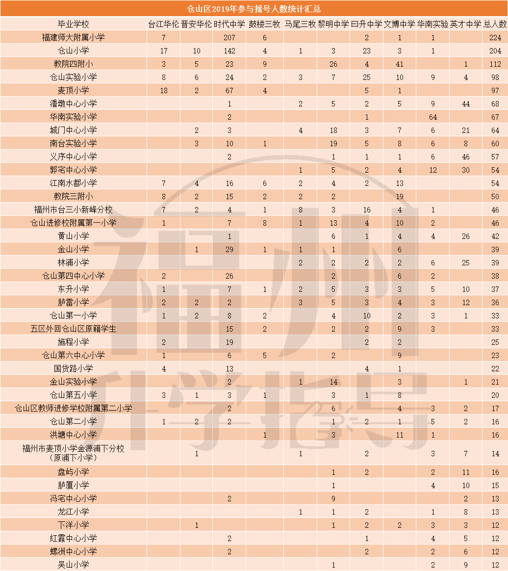 下面这个表格是仓山区2019年参加各私立校摇号的各小学人数,师大附中和仓小报考私立校都超过了200人,报考时代中学的人数更是多。我们都知道,福州大部分的民办校在往年都是有报考条件的,摇号前各私立校都能够从报名该校第一志愿的孩子筛选85%来参加摇号,也就说明这些学校都能够培养出许多优质毕业生的。毕业生的质量也体现了这个学校的办校实力,这个方面还是很值得家长们在择校的时候多多留意的。
