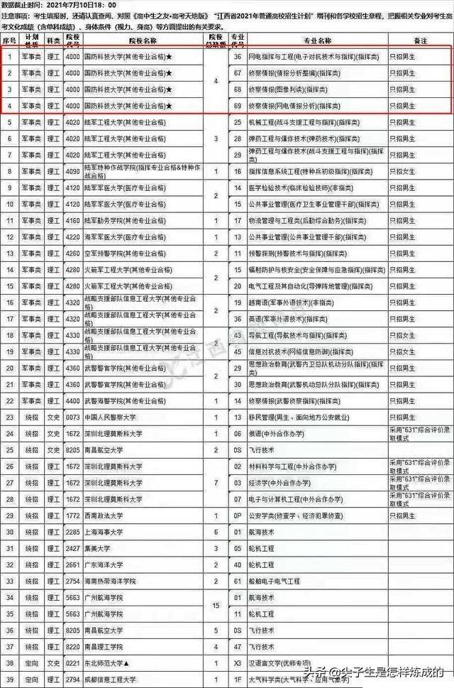 据网上信息多省提前批名额均未招满,还有大量空额,需要征集志愿。需要补录的大学有39所之多,其中有不少名校,在江西像国防科技大学这样的名校居然,都还需要补录4名,陆军工程大学也还需要补录3名。