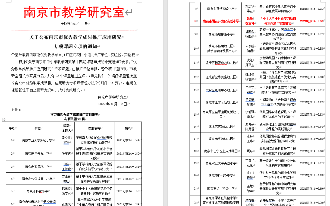 被南京市教育局授予“基础教育国家级优秀教学成果推广应用实验学校”,全域推广琅小“小主人教育:一体化课程与教学改革探索三十年”成果;