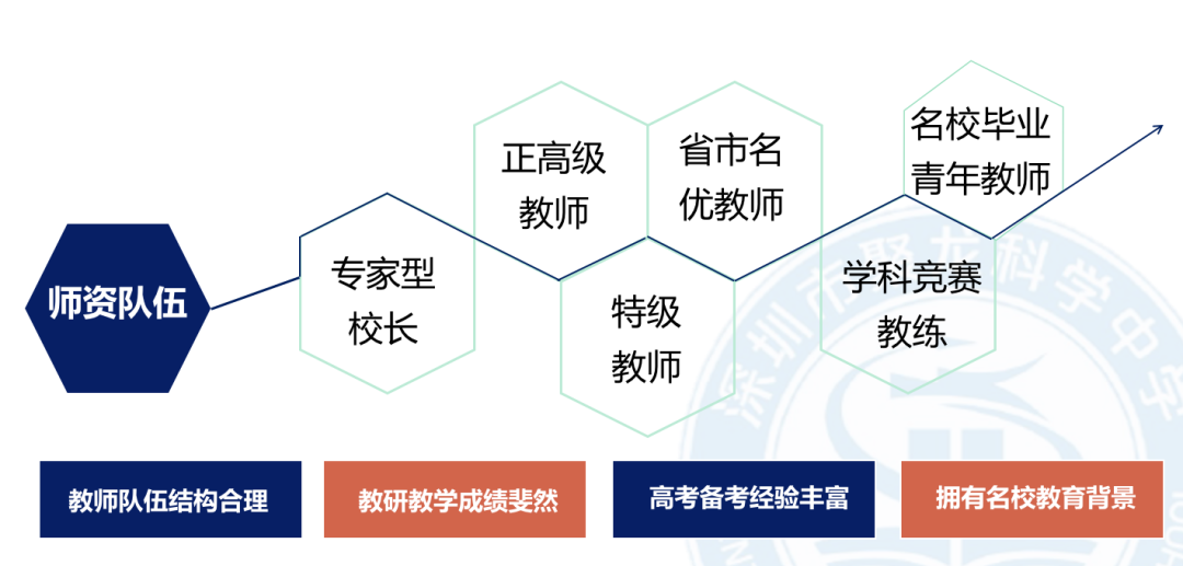 学校重视师资队伍建设,广聚贤才良师,组建了一支高学历、高素养、高水平的精英教师及管理团队。正高级教师、特级教师、省市名师、学科带头人、学科竞赛高级教练等是学校的中坚力量。